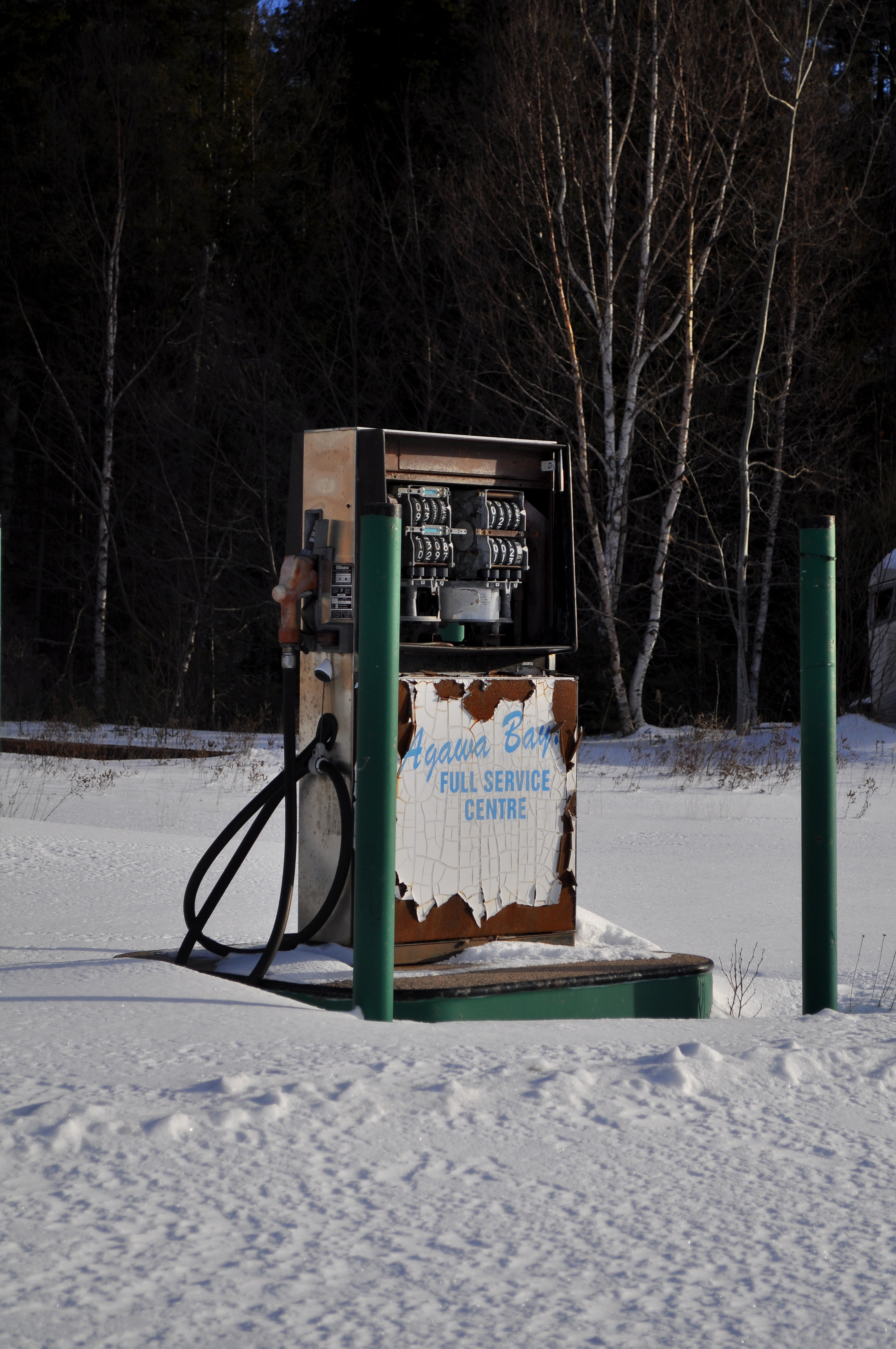 At this point i had just arrived to Sault Sainte Marie, 4 hours into the trip and was filling up the tank when i got a whiff of what smelled like rotten eggs. Unusual i thought so i popped the hood and noticed my battery was not only emitting fumes but was oozing battery acid. Fuck.. where the first words to exit my mouth, in a rather subtle and calm tone. I quickly went over to Canadian tire, ripped the battery out, ran inside and hooked her up to a multimeter, 15.2V in comparison to the nominal 12-12.7 reading. Did some research and it was clear my battery was being overcharged and the voltage regulator on my alternator was pooched. Stubborn and rather determined I tackled an alternator and battery swap in the parking lot of the Sault Saint Marie Canadian Tire.
