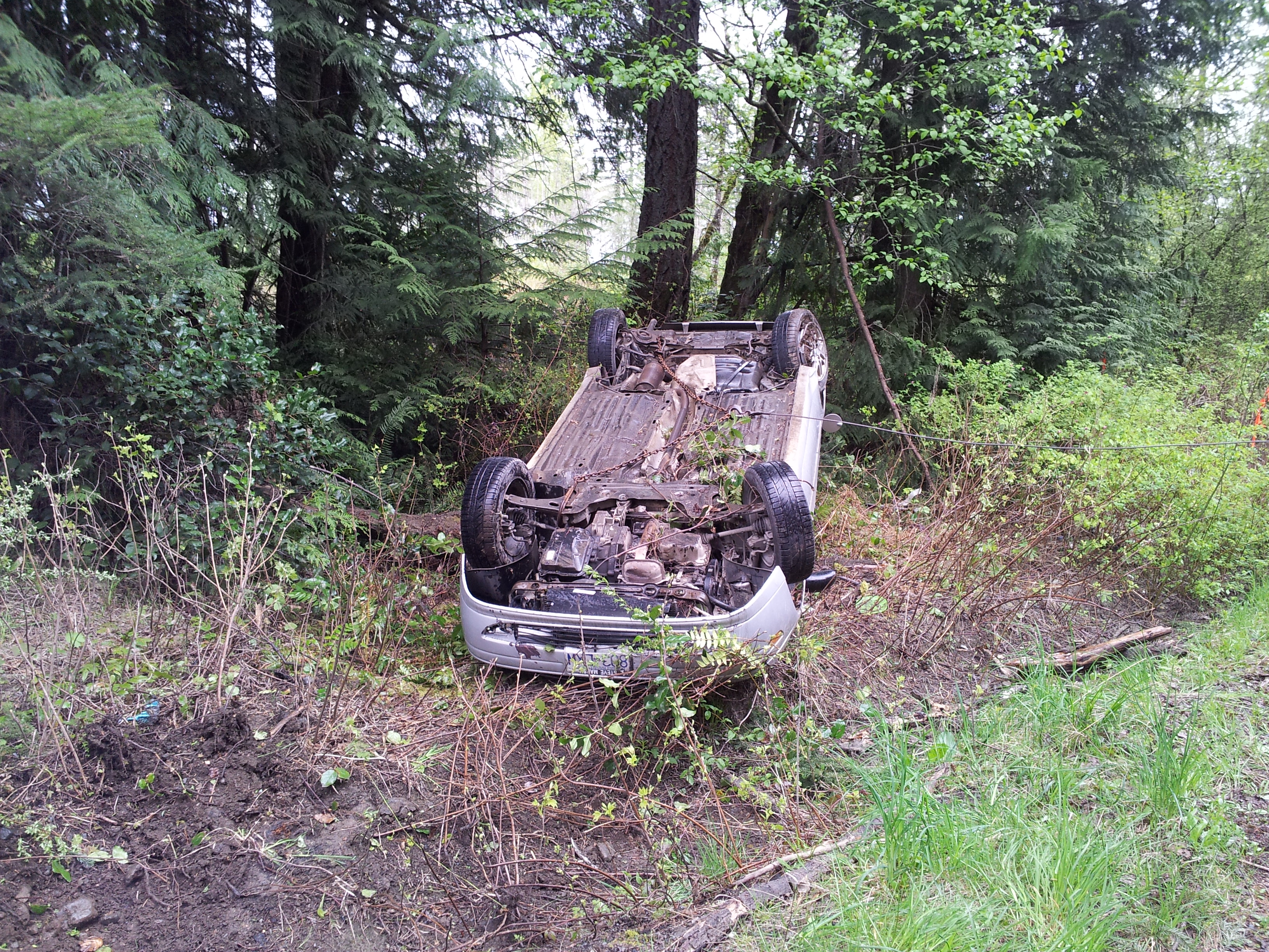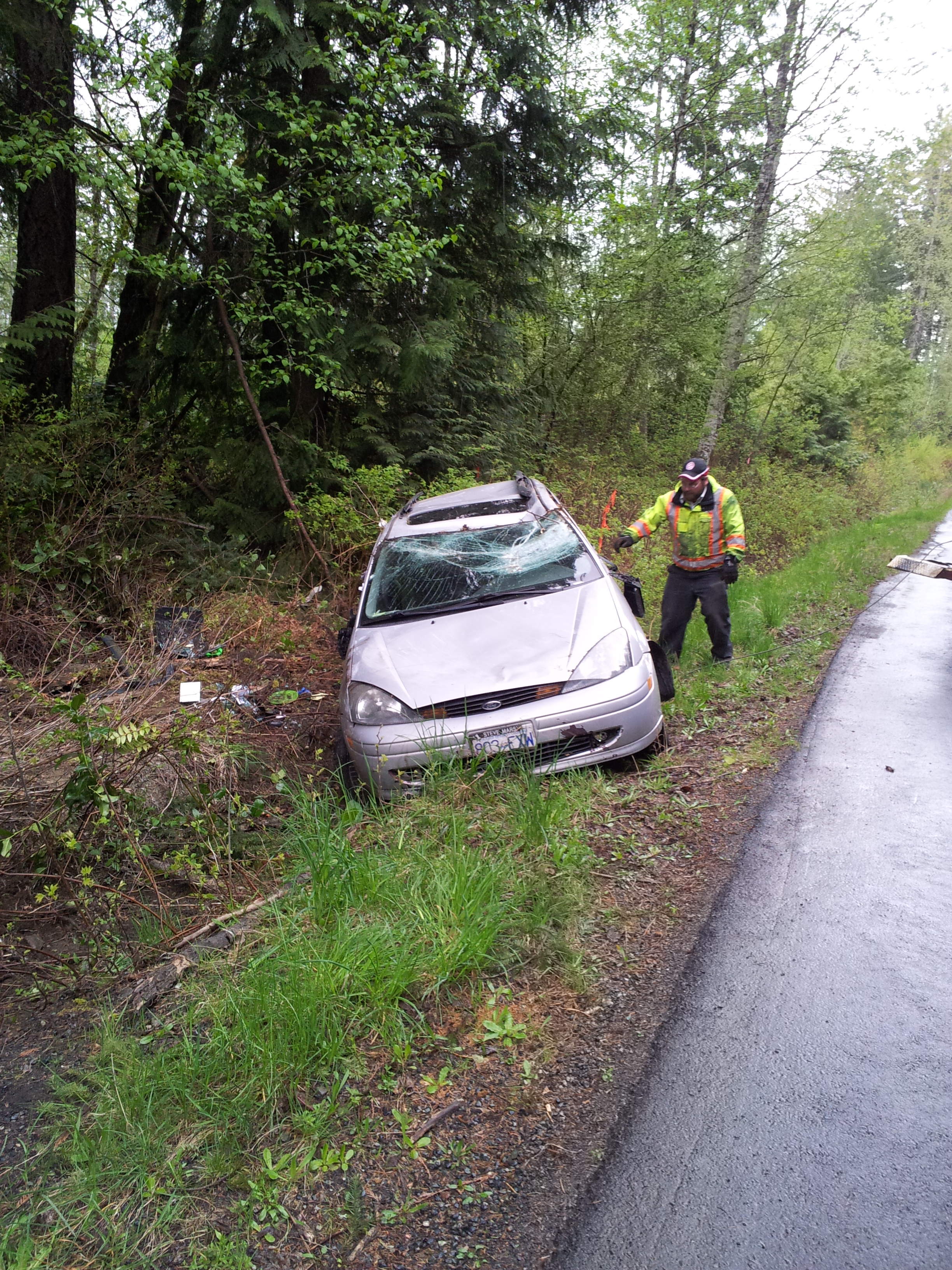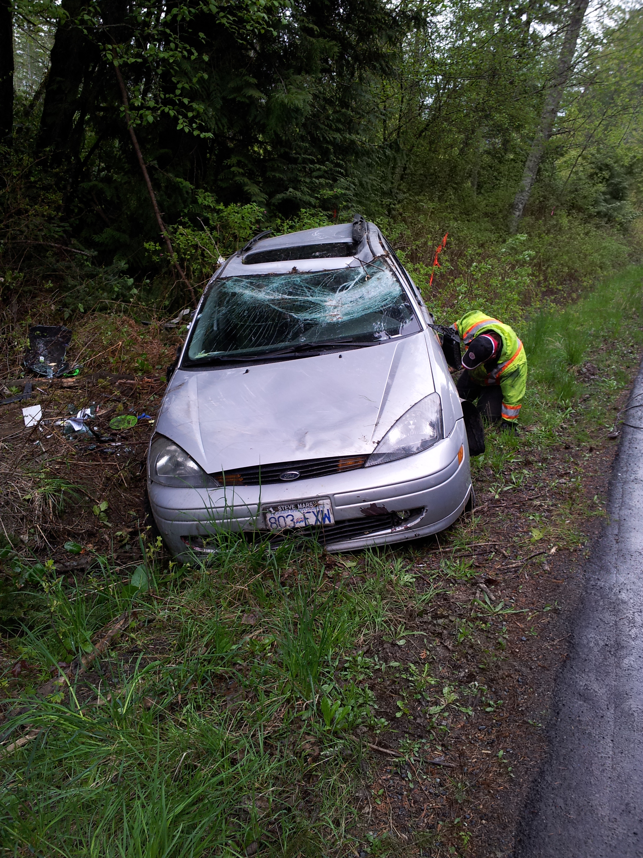 Wet roads + speeding = front flipping a ford focus.
