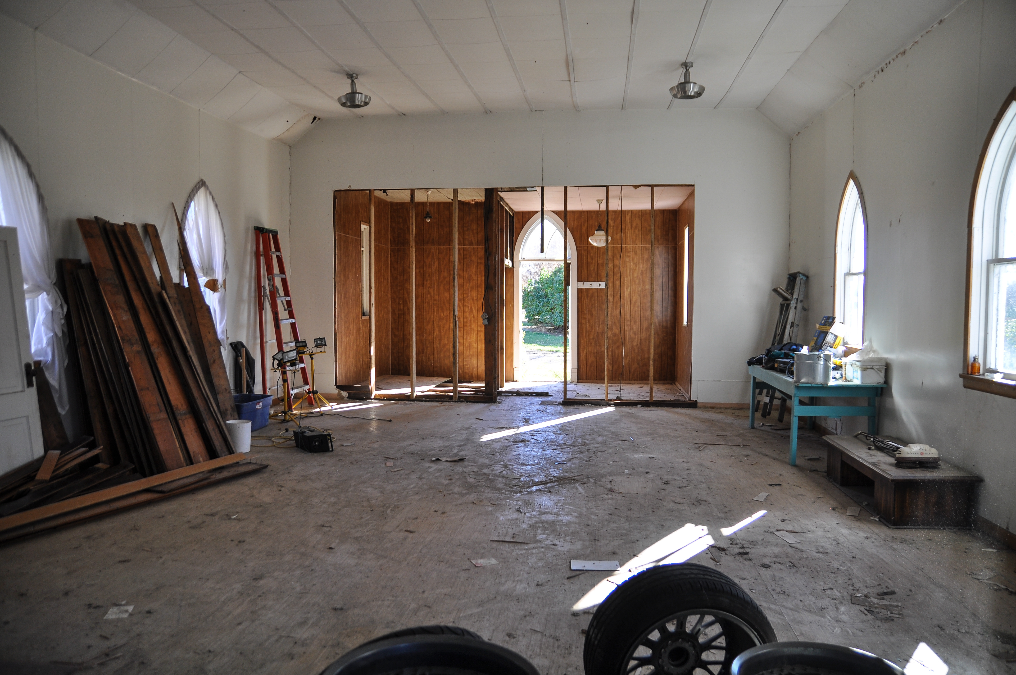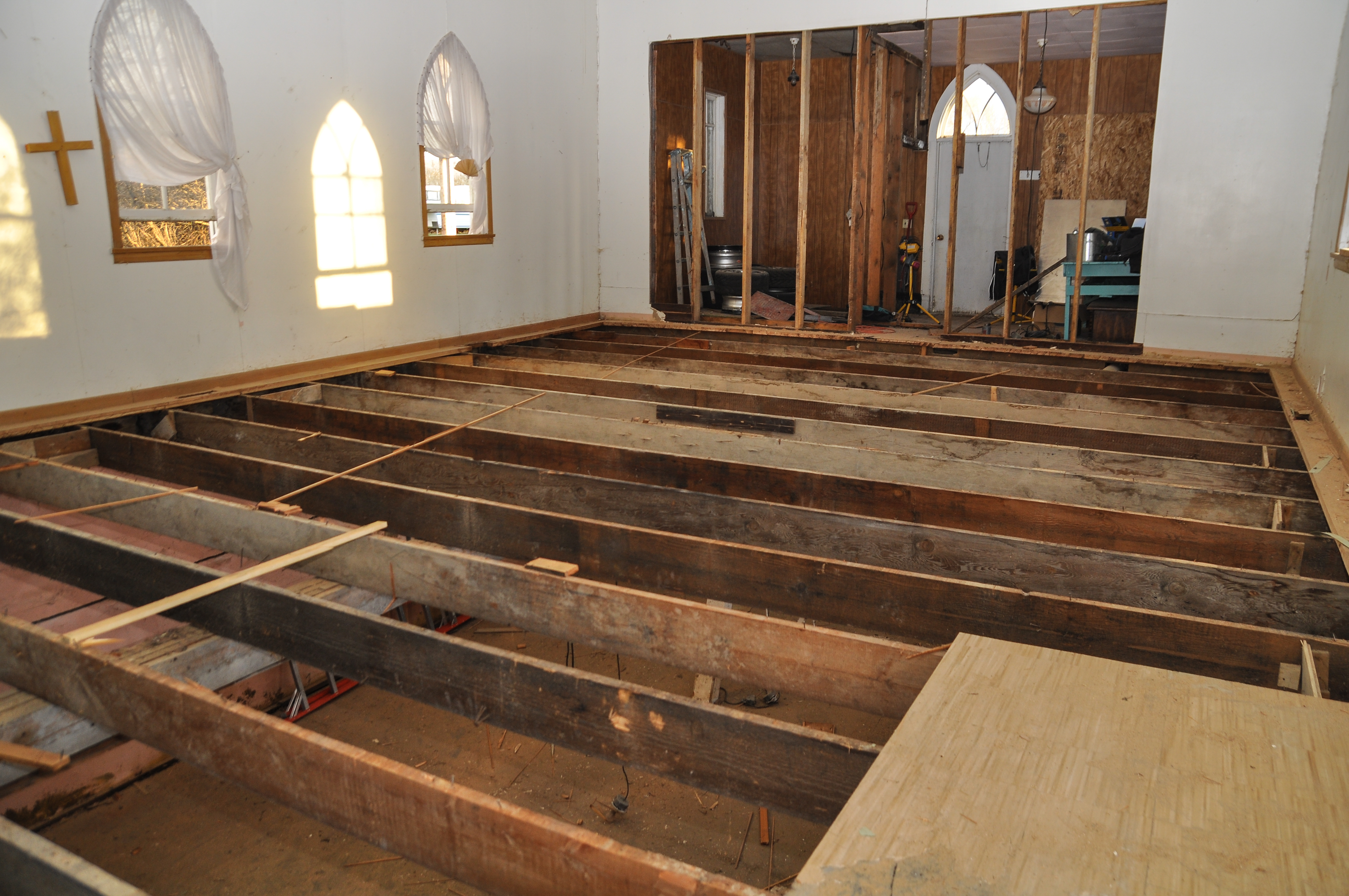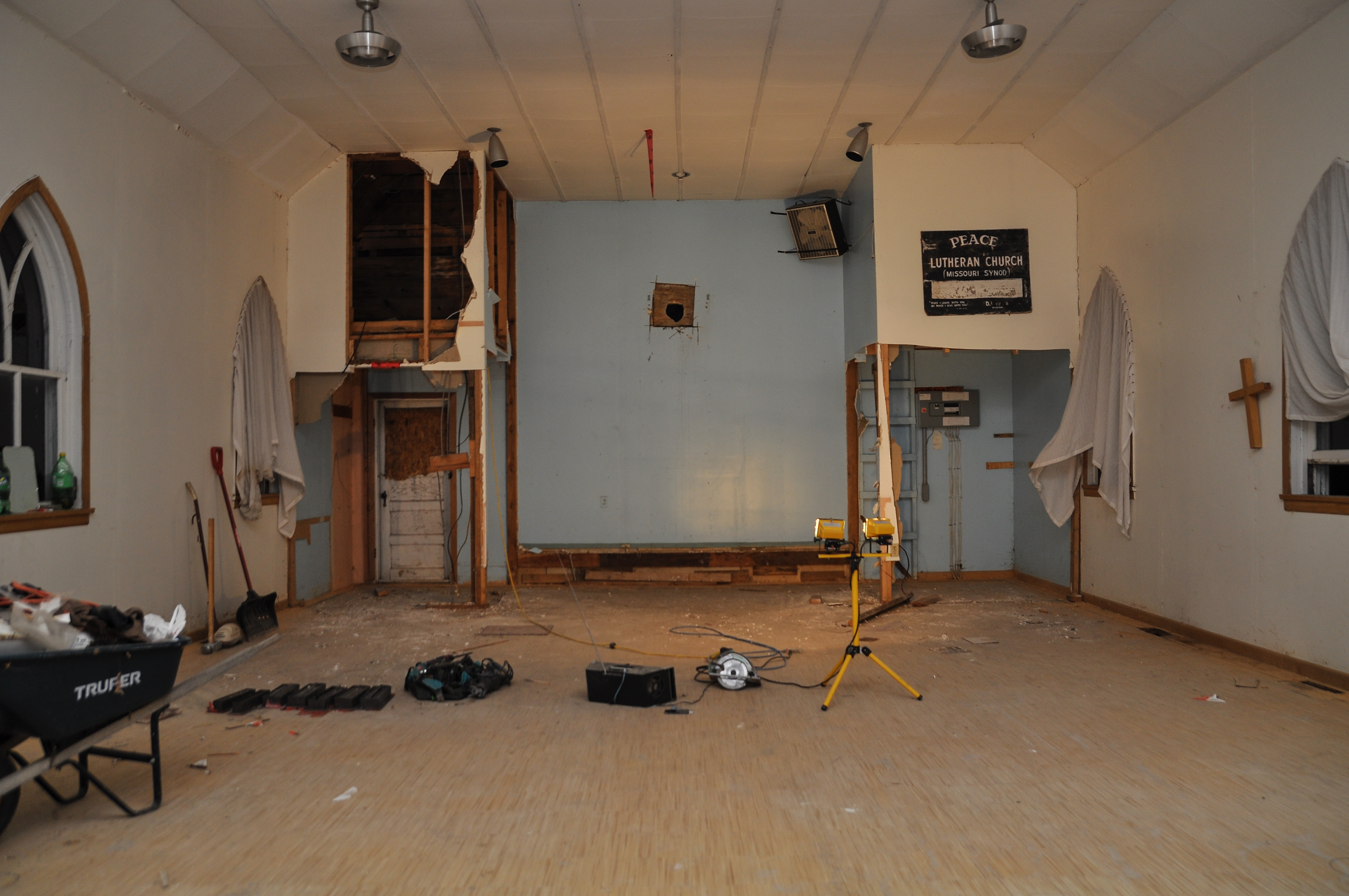 This is a build of a Lutheran church that was built in the early 1900’s. Being in service for 80+ years and standing for almost 120 years it has a lot of history. It has seen a town that was once a hub for local farmers and provided all the basic needs such as a bank, convenience store, black smith, curling rink, school, multiple grain elevators and lumberyards (which are all not in existence or not used for their intended purpose). There is still an active catholic church in town, I was told back in the day the Lutheran children could not hang out with the Catholic and vice versa. The pastors house was located on the property next to the church but has been torn down. The last service was in the mid 80’s and really had no purpose until I purchased in 2012. There is also a cemetery that I have no attachment too but there are a lot of tombstones from the early 1900’s. The church is approximately 35 minutes from my home in Moose Jaw, SK. My goal is to have a usable work space and return it to it’s original condition with the intention to get married in it one day.